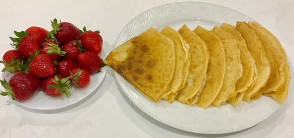 Муки может потребоваться немного больше, в зависимости от желаемой толщины блинчиков и качества муки. Я делаю достаточно жидкое тесто, чтобы блинчики получились тонкими.