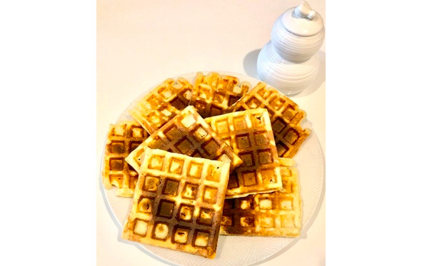 1. Все продукты смешиваем миксером. Соду перед смешиванием гасим лимонным соком или уксусом. Крахмал предварительно растворяем в молоке, чтобы в тесте не было комков. Масла добавляем только половину (10г.) Оставшиеся 10 г. нам понадобятся для смазывания вафельницы. Тесто получится по консистенции как у оладьев.