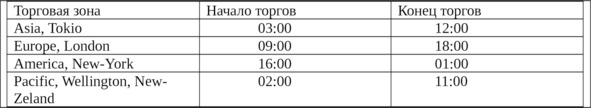 Ну и так как земной шар круглый и часовые пояса смещены: когда одни уснули, другие проснулись, – мы видим движения на валютном рынке: котировки двигаются 24 часа в сутки с понедельника по пятницу. Уважающие себя банкиры в субботу и воскресенье отдыхают. Потому ниже покажем график торговых сессий.