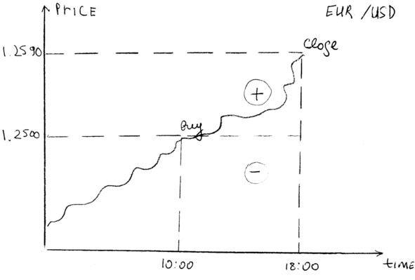 Сразу для себя отметьте, когда мы покупаем, где плюсовая зона, а где минусовая. Любая котировка выше точки входа на покупку дает денег. Любая котировка ниже – деньги отнимает. С этим ясно: купили подешевле – продали подороже.