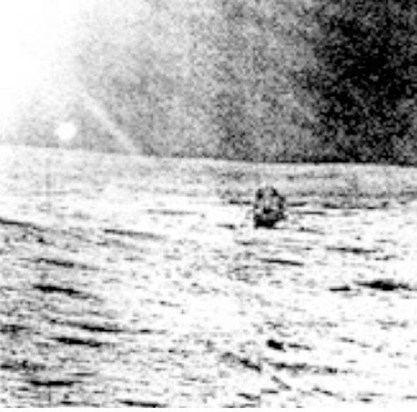 Вот краткие комментарии к фотографиям НАСА, ниже, это часть указанного поиска улик: Внимательно посмотрите на обе эти, якобы, лунные кадры прилунения. Несмотря на то, что лунный посадочный двигатель был, как нам сообщается НАСА, нет доказательств, что лунная поверхность нарушена под соплом, работой двигателя! Возле обода конуса кратера, астронавты «Аполлон 14» обнаружили большие куски скалы размерами один метр (3 фута) в диаметре. (Подпись НАСА). Но никакого кратера от работы ракетного двигателя на грунте не было.