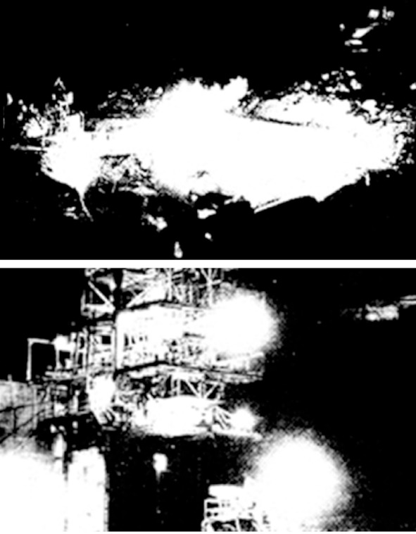 Такие тесты были опасны до крайности из-за токсичности топлива, когда его сжигают. Выбросы из ракетных двигателей были смертельно опасны для местного населения. Жители близлежащей долины Сан-Фернандо не знали ничего о характере и опасности этого вида тестирования-еще один пример высокомерное отношения к людям крупных корпораций, которые не заботились о здоровье людей и о природе. Далее представлена некогда засекреченное изображение двигателя ракеты «Атлас» на статическом испытательном стенде.
