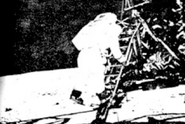 Есть несколько аномалий в этом поддельной фотографии (фейк): А. Отсутствие пыли на лицевом щитке или на других частях костюма «космонавта», хотя там была бы липкая, мелкая пыль, если бы они действительно высадились на Луне.