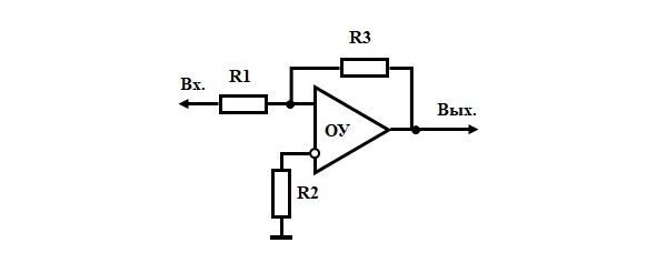 ОУ – операционный усилитель, R1, R2, R3 – сопротивления