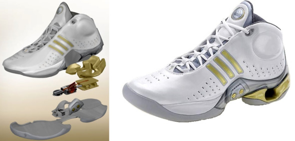 Компания Adidas создала кроссовки снабженными микропроцессорами, датчиками и микромотором (рис. 22.27). Кроссовок адаптируется под почву, меняя амортизационные характеристики подметки. Кроссовки сами приспосабливаются к габаритам бегуна и длине его шага, выбирают оптимальную упругость для любого покрытия – от твердого до пересеченной местности и от сухих улиц до влажного океанского берега. Вес кроссовок составляет 400 г, из которых на «электронно-мозговую» часть приходится всего 40 г. Через каждые 100 ч необходимо менять батарейку.