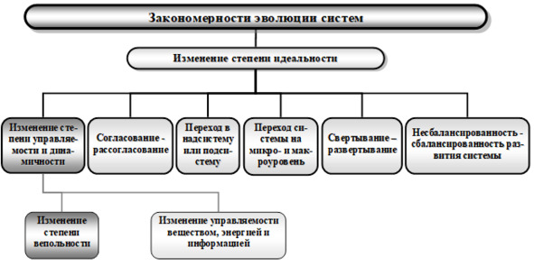 Закономерность изменения степени вепольности является следствием закономерности изменения степени управляемости и динамичности, относящийся к группе закономерностей эволюции систем (рис. 23.1).