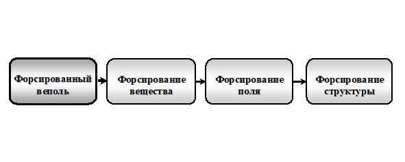 Наивысшим этапом повышения управляемости веполей является переход к форсированным веполям (рис. 23.6). Форсировать можно вещество, поле и структуру.