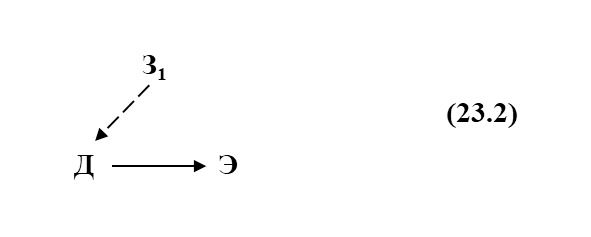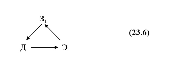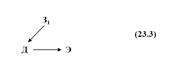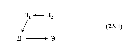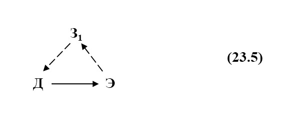 где З1 – знание о состоянии элемента Э. Это знание З1 изменяет действие Д в зависимости от состояния элемента Э. Пунктирные стрелки означают, что знание о состоянии элемента введено заранее.