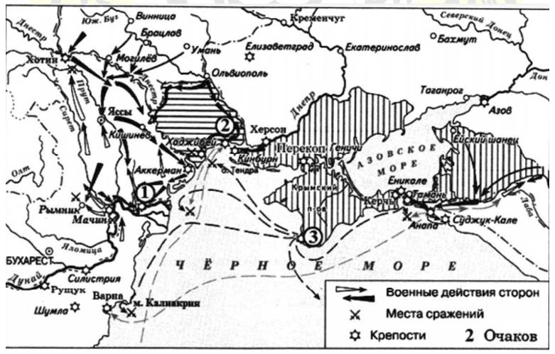2) В штурме крепости, обозначенной на схеме цифрой «1», принимал участие М.И. Кутузов.
