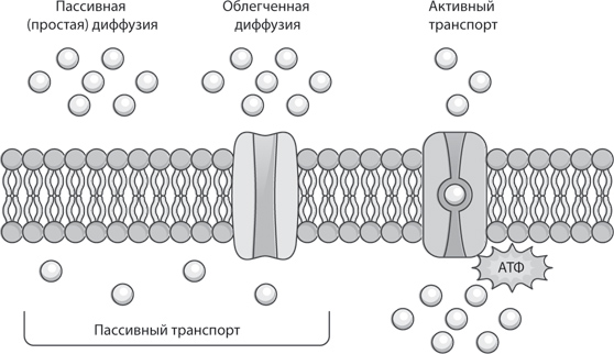 2. Облегченная диффузия – это диффузия, которая поддерживается (облегчается) мембранными транспортными каналами. Эти каналы представляют собой гликопротеины, которые позволяют молекулам преодолевать мембрану (см. рис. 1).