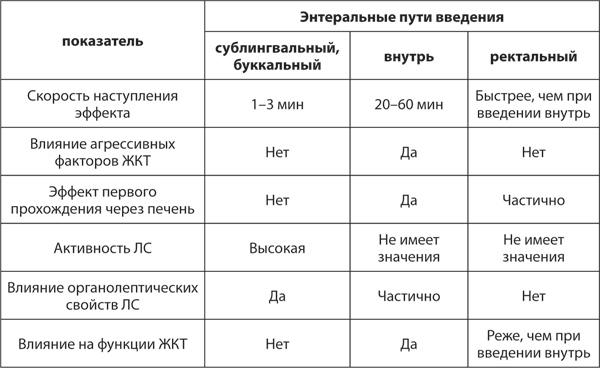 Таблица 2. Сравнительная характеристика путей абсорбции ЛС