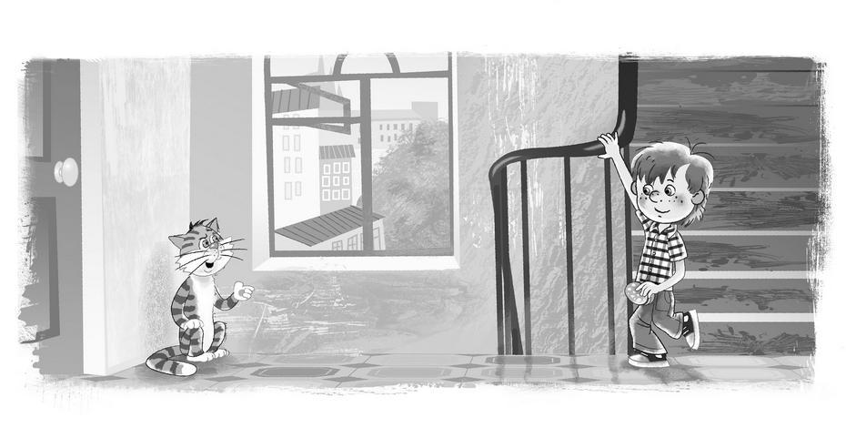 А однажды было так. Идёт себе дядя Фёдор по лестнице и бутерброд ест. Видит – на окне кот сидит. Большой-пребольшой, полосатый. Кот говорит дяде Фёдору: