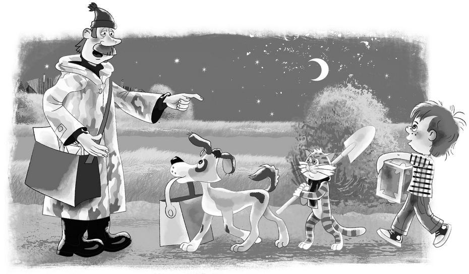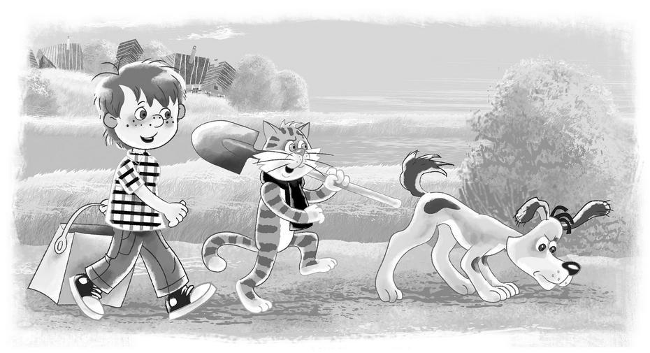 Взял кот деньги и пошёл за коровой. А дядя Фёдор на почту пошёл письмо писать на завод, чтобы ему трактор выслали.