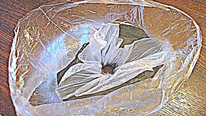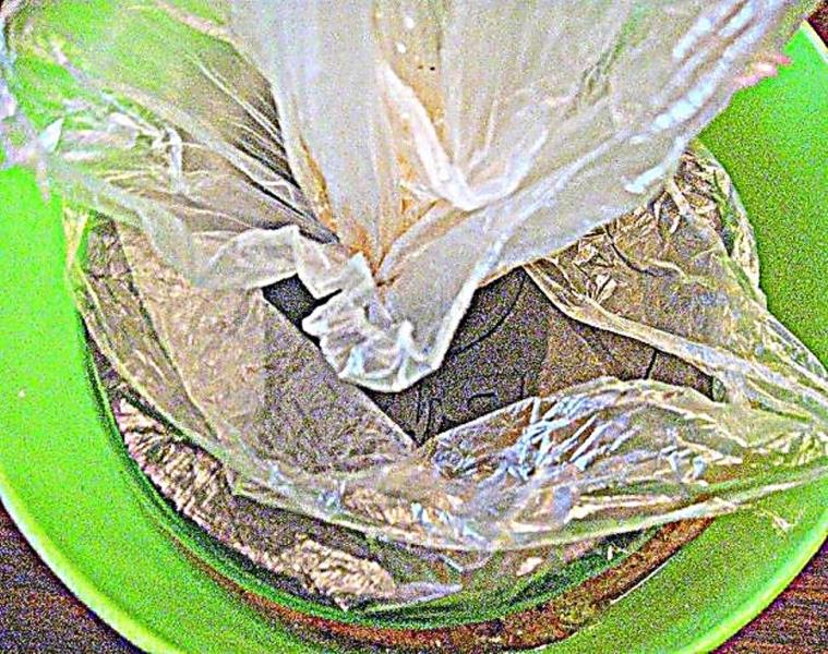 Затем завернуть всё в плёнку, придать форму и уплотнить, обмотав, как следует, несколькими слоями плёнки.
