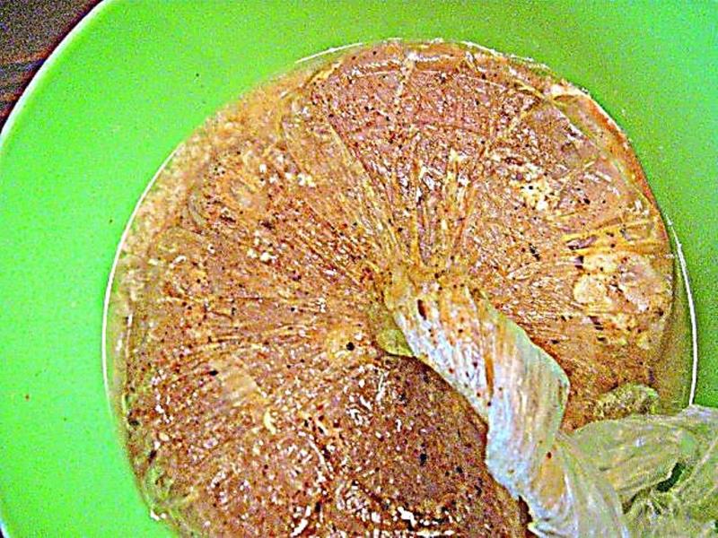 Поставьте миску с мясом в пакете, под грузом, в холодильник на сутки.