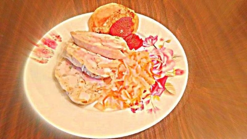 Куриная кожа отлично держит форму, и колбаса нарезается аккуратными кругляшами.