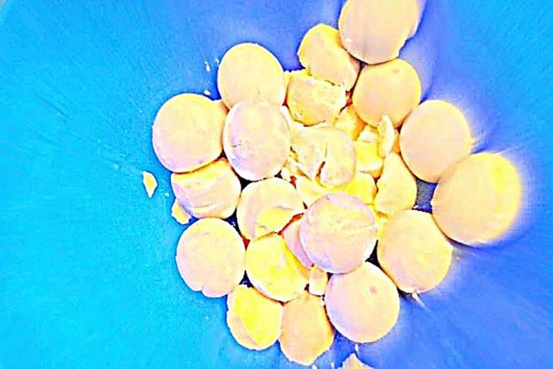 Кстати, оставшиеся варёные белки покрошить, добавить майонез и рубленый зелёный лук, перемешать и употреблять, как салат.