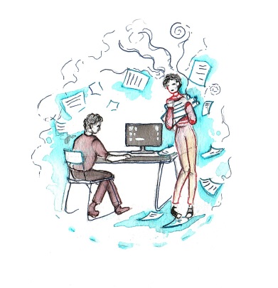 Катя нервно рылась в бумагах на своем столе, явно пытаясь что-то найти, производя при этом достаточно много шума и мешая другу, который устанавливал на ее компьютер новую программу тут же за столом.