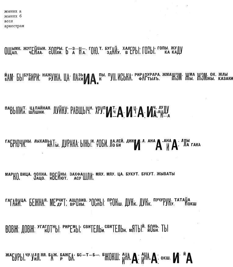 Стих в ситуации подрыва монополии письма был одной из постоянных тем статей и манифестов пропагандиста футуризма в России, поэта Ильи Зданевича. В манифесте «Многовая поэзия» Зданевич провозглашал всёчество – новое направление в искусстве, отвергавшее письменные формы бытования стиха. Зданевич настаивал (в духе Маринетти) на декламации: «не читаемая про себя MV (многовая поэзия. – Ред.) миновав замусленые в молче библиотек гроба бежыт раскрасившись на эстрады…»56.