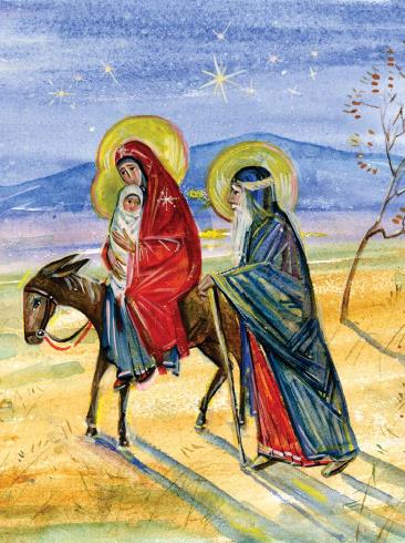 Когда волхвы ушли из Вифлеема, а Иосиф и Пресвятая Дева Мария совершили в Храме Иерусалимском все по Закону Господню, Ангел Господень явился Иосифу во сне и сказал: «Встань, возьми Младенца и Матерь Его, и беги в Египет, и будь там, доколе не скажу тебе, потому что Ирод хочет искать Младенца, чтобы погубить Его». Чтобы устроить домашние дела, Иосиф с Пресвятой Девой и Богомладенцем возвратился в Назарет, не медля устроил дела по дому, взял Младенца и Матерь Его и отправился ночью в Египет.