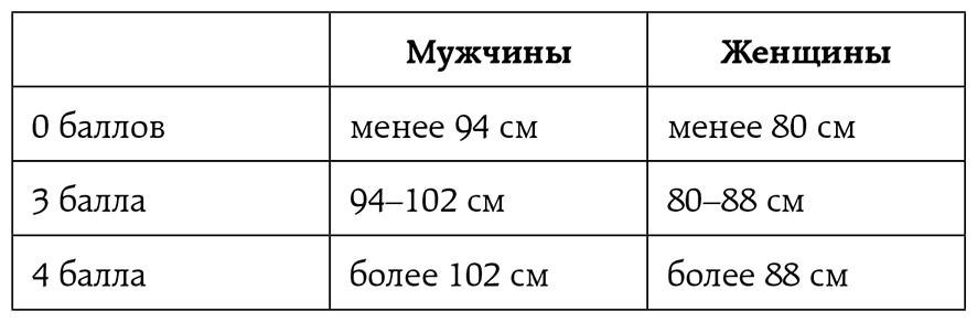 • абдоминальное ожирение: окружность талии > 80 см у женщин и > 94 см у мужчин;