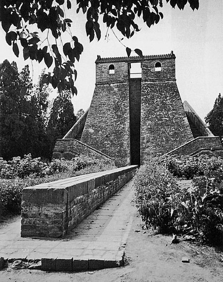 Надо сказать, что следы древнейших астрономических обсерваторий в Китае, отсутствовавшие во времена Морозова, впоследствии «счастливо обнаружились». Причем – не просто следы, а подчас огромные сооружения, прекрасно сохранившиеся и как будто совсем недавно построенные По нашему мнению, это самые настоящие новоделы, не имеющие никакого отношения к астрономии, а сделанные просто для туристов. Чего стоит, например, гигантский гномон размером с крепостную башню, стоящий сегодня в Денфене, в китайской области Хенан (Dengfeng, Henan). Фотография этого «гномона» приведена в [1487:1]. Мы воспроизводим ее на рис. 8.