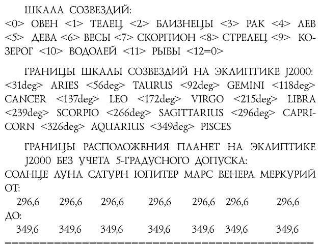 Гороскопом называется расположение семи планет древности – Солнца, Луны, Марса, Меркурия, Сатурна, Юпитера и Венеры – по созвездиям (или по знакам) небесного Зодиака. Старинные гороскопы основывались на созвездиях и предназначались для записи дат [НХЕ]. В наше время гороскопы ушли в область гадательной астрологии и используются совсем в других целях. Надо сказать, что астрологи изменили даже сам принцип построения гороскопов, привязав их к зодиакальным знакам с переменным началом, вместо постоянных во времени зодиакальных созвездий. Астрологические гороскопы мы рассматривать не будем и упоминаем о них лишь для того, чтобы не читатель не подумал, что речь ниже пойдет о чем-либо относящимся к астрологии. Что же касается старинных астрономических гороскопов, посредством которых записывались даты, то они являются исключительно ценным источником для хронологии [НХЕ].