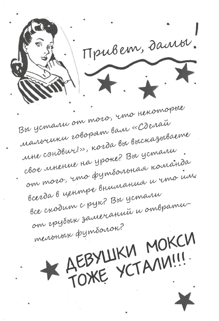 – Все это правильно, – говорит Сара, – Все, что здесь написано. Но кто это сделал? Кто эти девочки-Мокси? Какой-то клуб или типа того?
