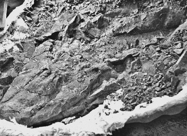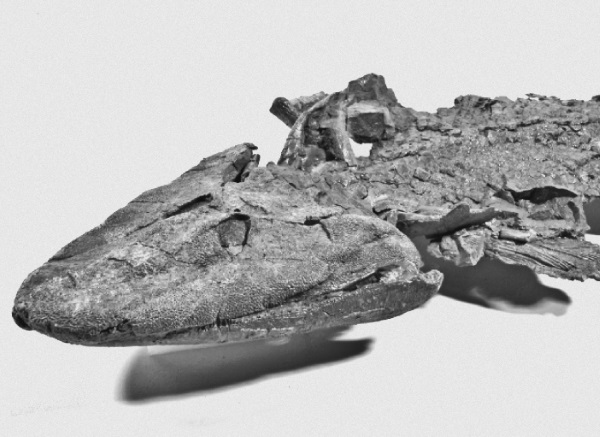Все изменилось за четыре дня в начале июля 2004 года. Я переворачивал камни на дне карьера, где приходилось чаще колоть лед, чем породу. В одном месте, проломив лед, я увидел картину, которой никогда не забуду: участок, покрытый чешуей, не похожей ни на что из того, что мы до сих пор находили в этом карьере. По соседству с этим участком я заметил выпуклость, тоже покрытую льдом. Она напоминала челюсти. Но эти челюсти не были похожи на челюсти ни одной из виденных мной рыб. Похоже, что голова, которая несла эти челюсти, была плоской.