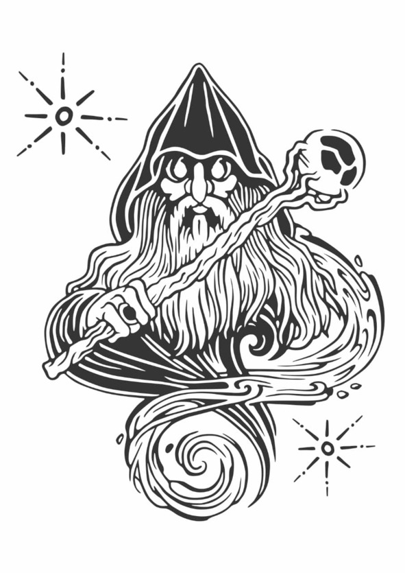 По дороге размеренным шагом шел человек. Он был высокого роста, худощав, но очень широк в плечах. Черный, наглухо запахнутый плащ, добротные сапоги и черная широкополая шляпа с длинным, конусообразным верхом любому встречному говорила, что перед ним маг. Если заглянуть под плащ, то кроме изодранной арестантской робы и страшных следов от побоев вы больше ничего не увидите. У путника не было никакой ноши, лишь посох с большим белым камнем на конце. На вид ему было лет 60 – 65. Немного горбатый нос, большие черные глаза, лицо, все испещренное шрамами, длинная темная борода и усы – совершенно белые, спадающие на бороду двумя полосами.