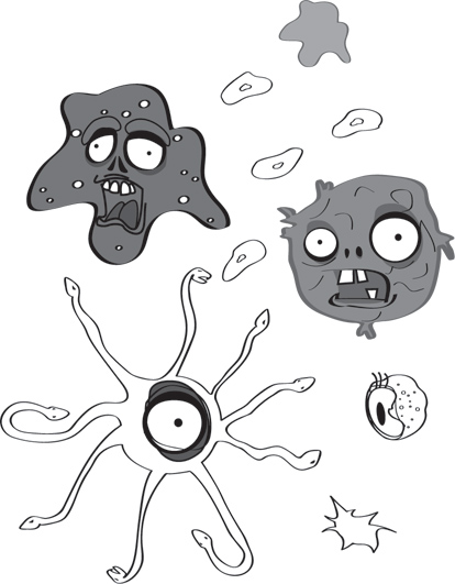 Однако, несмотря на постоянный доступ к пище, клетки по-прежнему не могут привыкнуть к продуктовому изобилию. За порядок в клетках отвечает своего рода группа секьюрити – они следят, чтобы внутрь не заходило слишком много, чтобы попавшие внутрь вели себя хорошо и чтобы вечеринка внезапно не превратилась в потасовку.