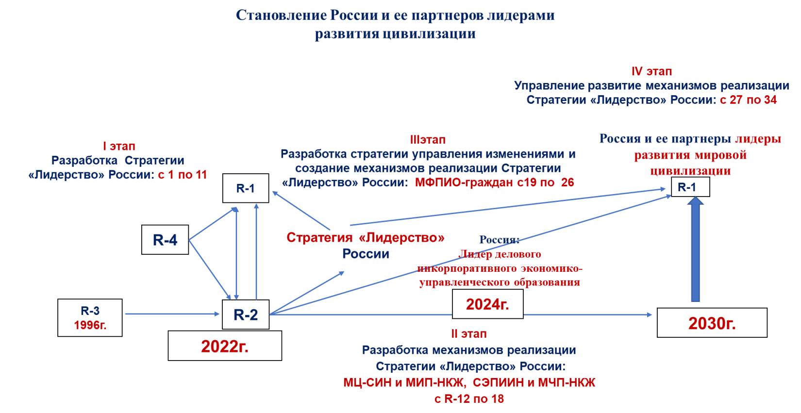 Выделенные три стратегических направления лидерства России и ее партнеров в развитии цивилизации реализуется поэтапно: