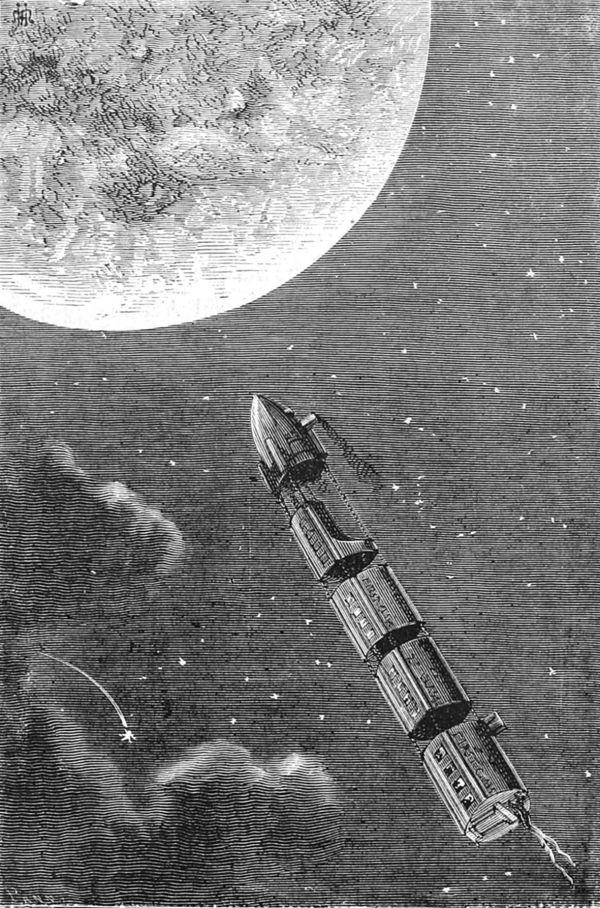 Иллюстрация из книги Ж. Верна «Из пушки на Луну». 1868 г.