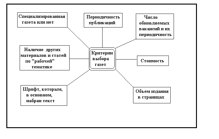 Допустим, что вы остановили свой выбор на специализированной газете (например, «Работа для вас»). Давайте опять сформулируем критерии отбора информации о потенциальной работе, но уже в рамках конкретной газеты (см. рис.1.4):