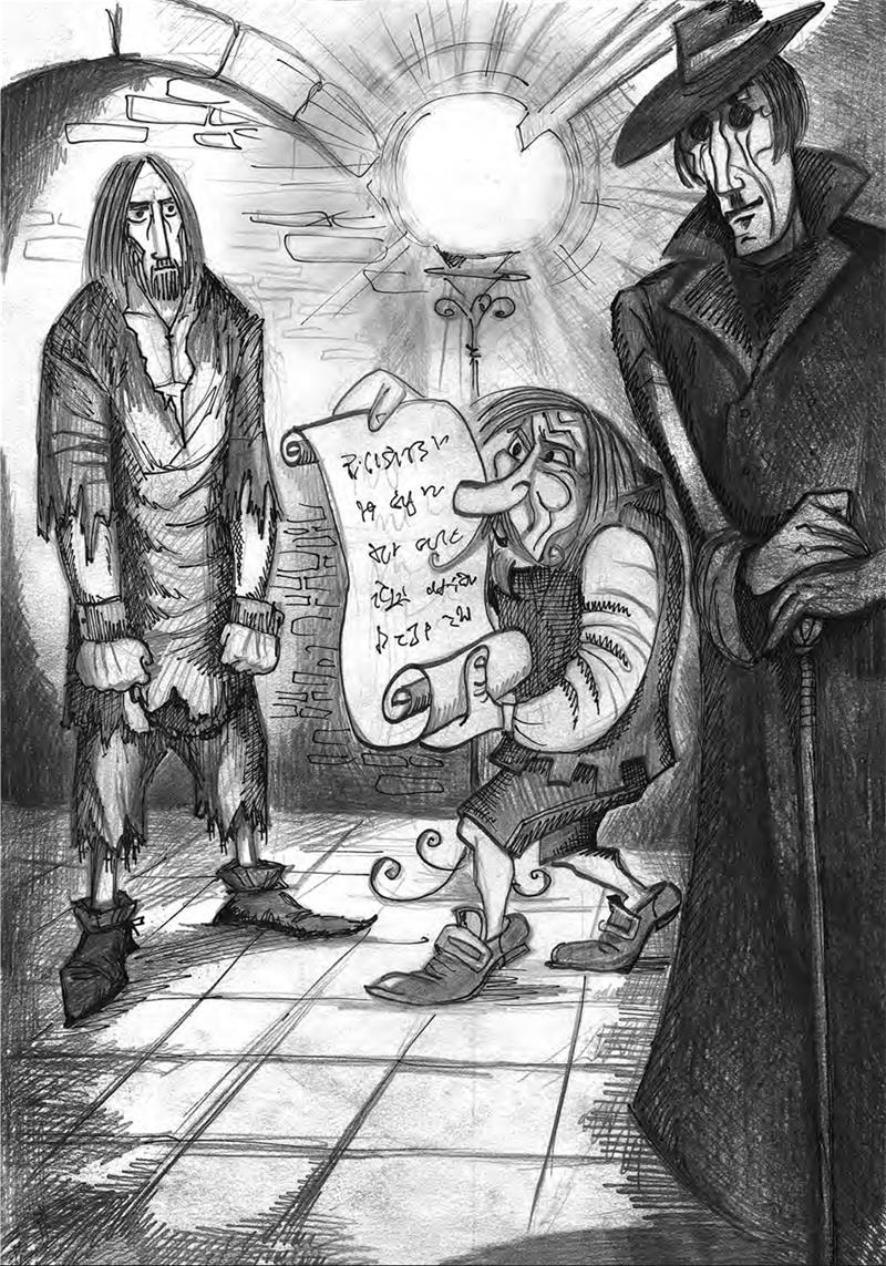 – А вот и наш бунтарь, – заискивающе загнусавил Карлик. – Что же это вы, батенька, народ к смуте призываете? И не смотрите на меня так. Извольте прочитать донос! – с этими словами Карлик развернул свиток.