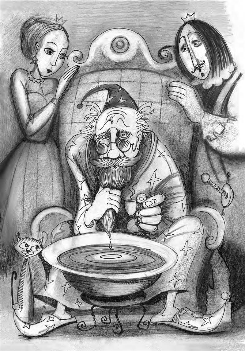Неподалеку от королевства в лесу жил Мудрец, который никому никогда не отказывал в помощи. Поговаривали, что он имеет чудодейственную силу исцелять людей как различными зельями, так и словом, знаниями. Только вот добраться до него не так уж просто было. В один прекрасный день Король с Королевой решили тоже направиться к нему, невзирая ни на какие трудности, встречавшиеся на пути. Они так долго шли к своей мечте, что им показалось, будто бы дорога сама привела их к заветному месту. Старец встретил гостей и провел к себе. Там он долго и внимательно слушал их, задавал разные вопросы, смотрел в глаза, а потом в чистую воду. И вот что он там увидел: