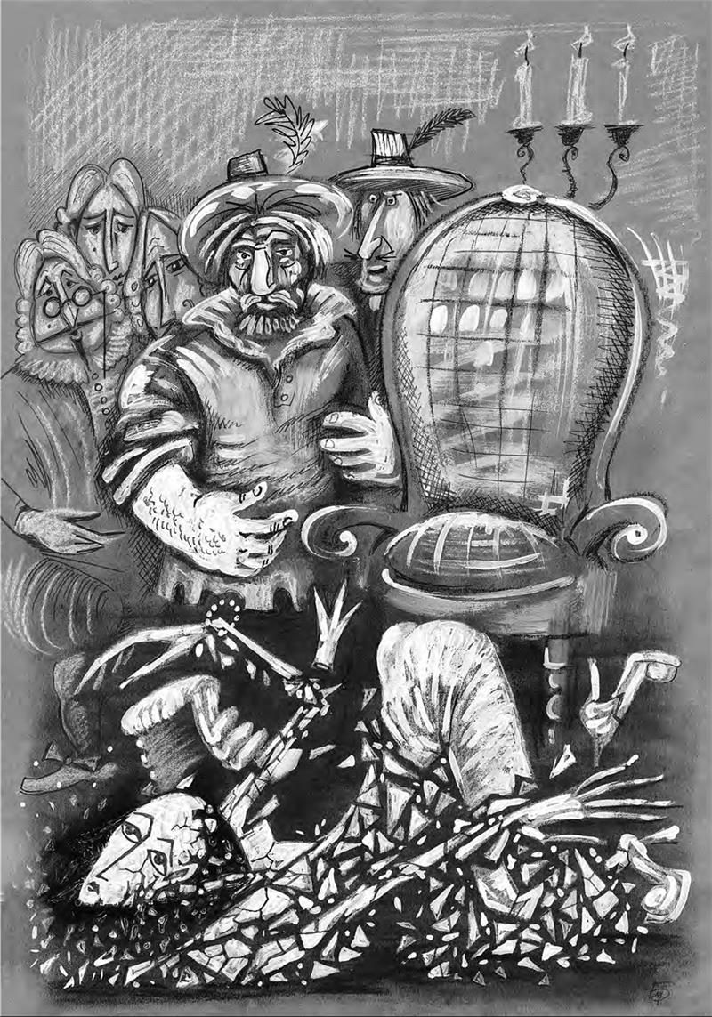 Но больше всех зеркала издевались над Королем. Жители королевства раньше относились к нему с огромным уважением, но раз уж злословие стало нормой, то и власти не поздоровится. Зеркала каждый день издевались над Королем. Споткнется у Короля лошадь – зеркала трубят об этом. Не вовремя пойдет дождь – зеркала винят в этом Короля. Напьется плотник – зеркала опять Короля припомнят. Обратиться Король к народу да чихнет, зеркала и скажут только, что он чихнул, а значит, чихал на свой народ.