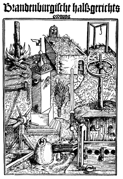 В картинах Энхарда Шена запечатлен мир ужасов: нюрнбергский инвентарь германских палачей начала XVI в., их инструменты и реки крови.