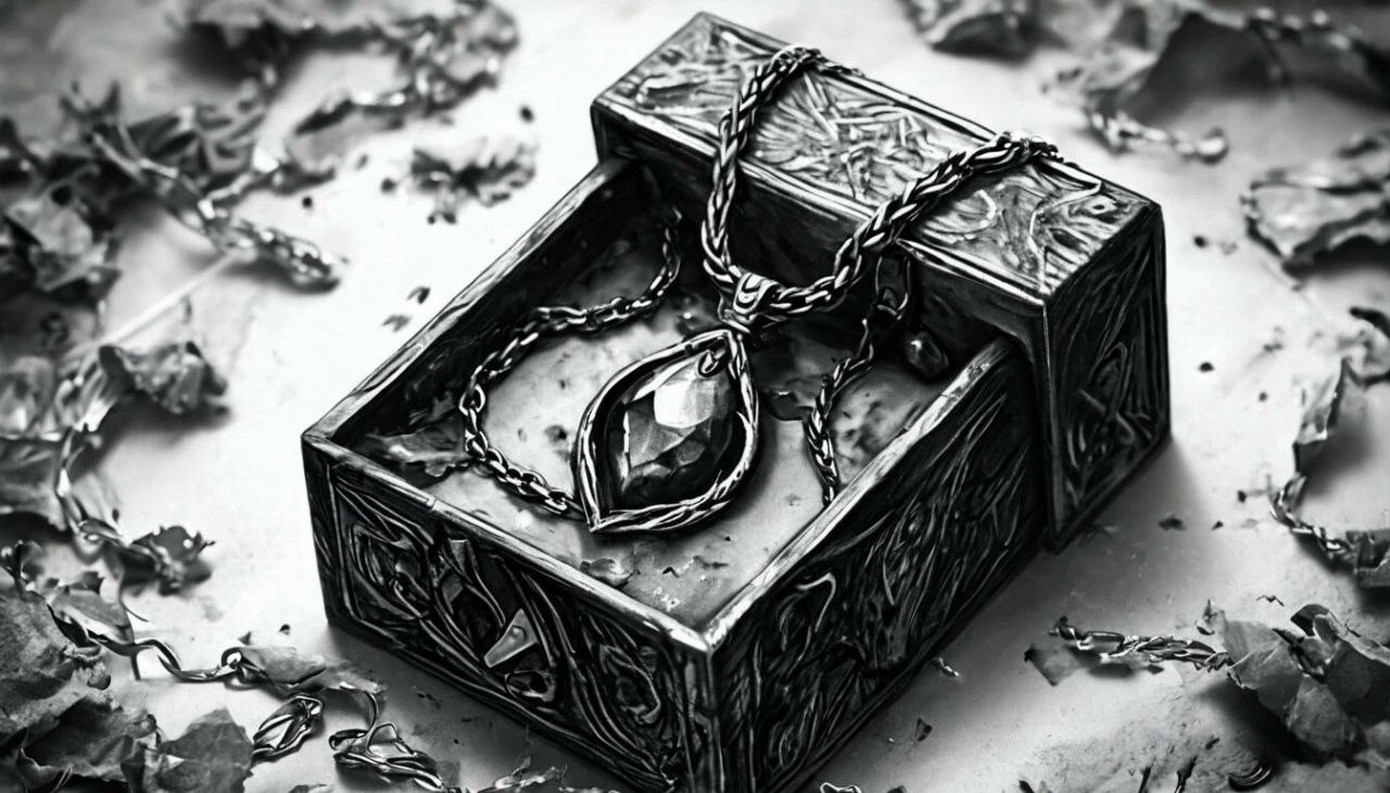 Там внутри лежал потрясающей красоты кулон. Золотая цепочка, а к ней филигранно прикреплён прозрачный, с лёгким белым оттенком камень, формой похожий на слезу. От камня исходило тепло, и он как будто бы светился. Никогда такой красоты не видела.