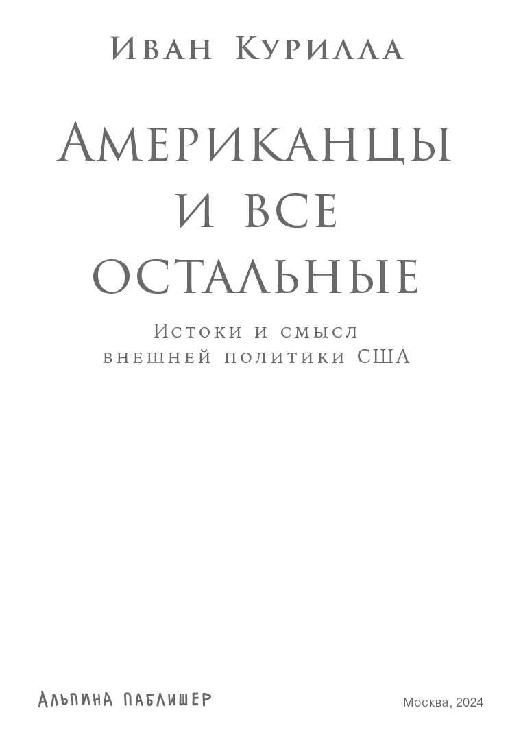 Вместе с тем книга не претендует на полное освещение истории Соединенных Штатов или американской внешней политики. Читателю не стоит искать в ней объяснения истоков богатства или могущества современных США, как и полного изложения событий американской истории или внешней политики страны[2]. Задачей автора является предложение интерпретационной схемы, выделение ключевых факторов, лежащих в основе политики крупнейшей мировой державы современности.