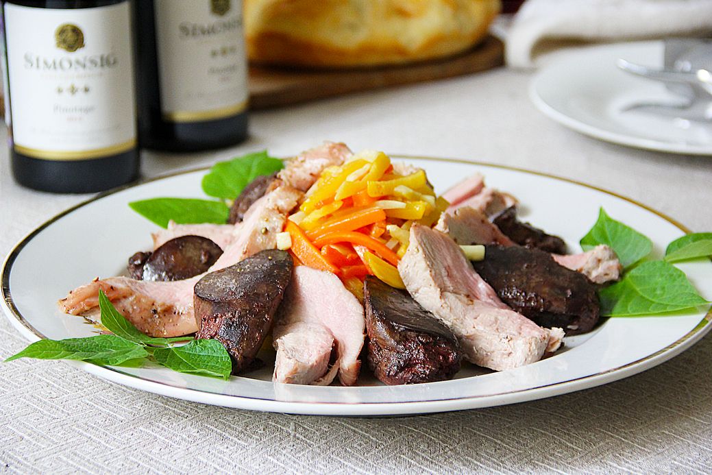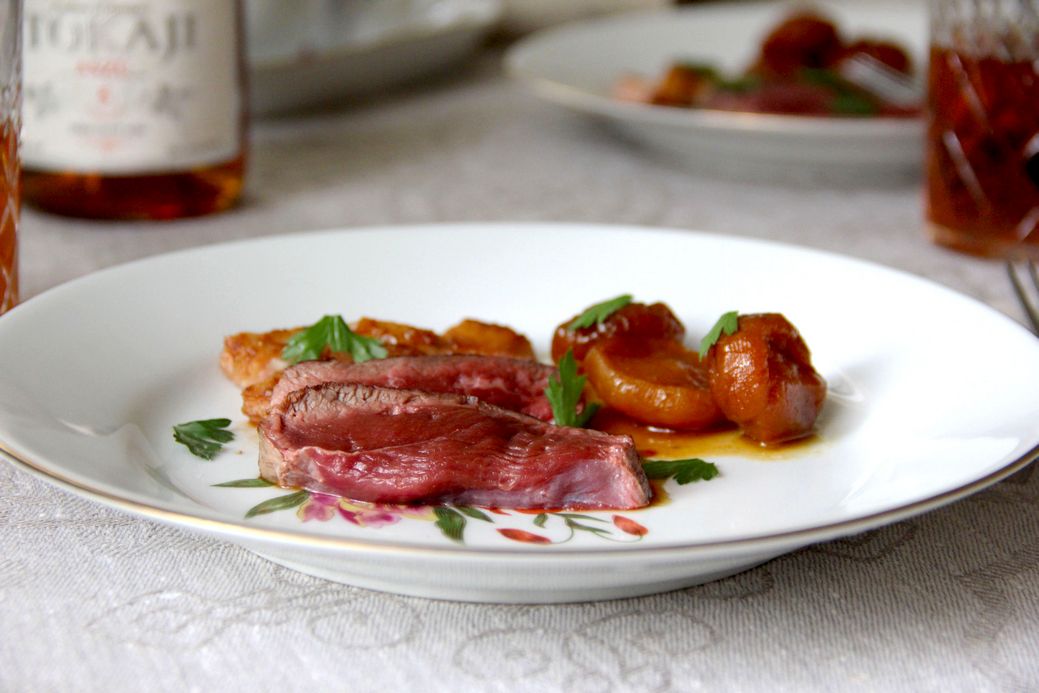 Карамелизированная гусиная грудка с конфи из репы и токайским вином