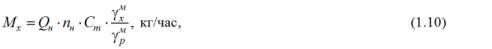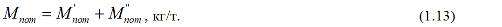 Потери магнетита с хвостами регенерации в расчете на 1 т исходного питания при непрерывной работе тяжелосредной установки в период опробования (без снятия нагрузки по питанию) М' ном определяют по формуле: