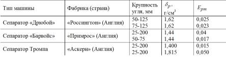 Многие исследователи, так же как и авторы метода оценки эффективности разделения по Еpm считают, что для одной и той же обогатительной машины этот показатель и форма кривой не зависят от обогатимости угля и, следовательно, для угля одной и той же крупности полностью характеризуют работу данного аппарата.