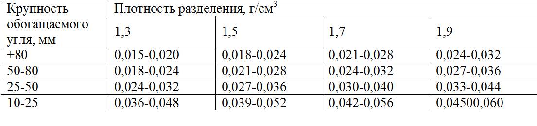 Установлено, что величина вероятного отклонения в значительной степени зависит от крупности обогащаемого угля и от плотности разделения.