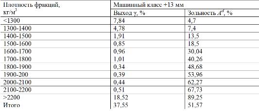 Расчет продуктов обогащения машинного класса +13 мм приведен в табл.1.31 и 1.32.