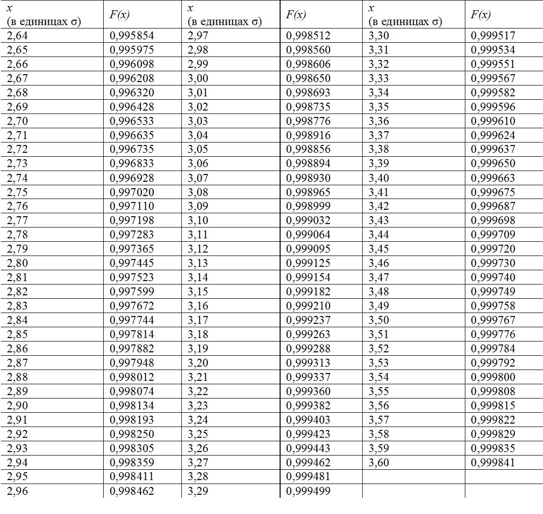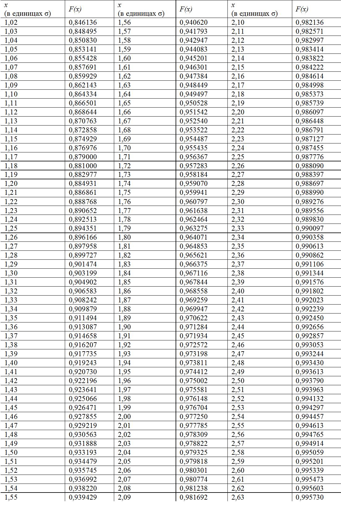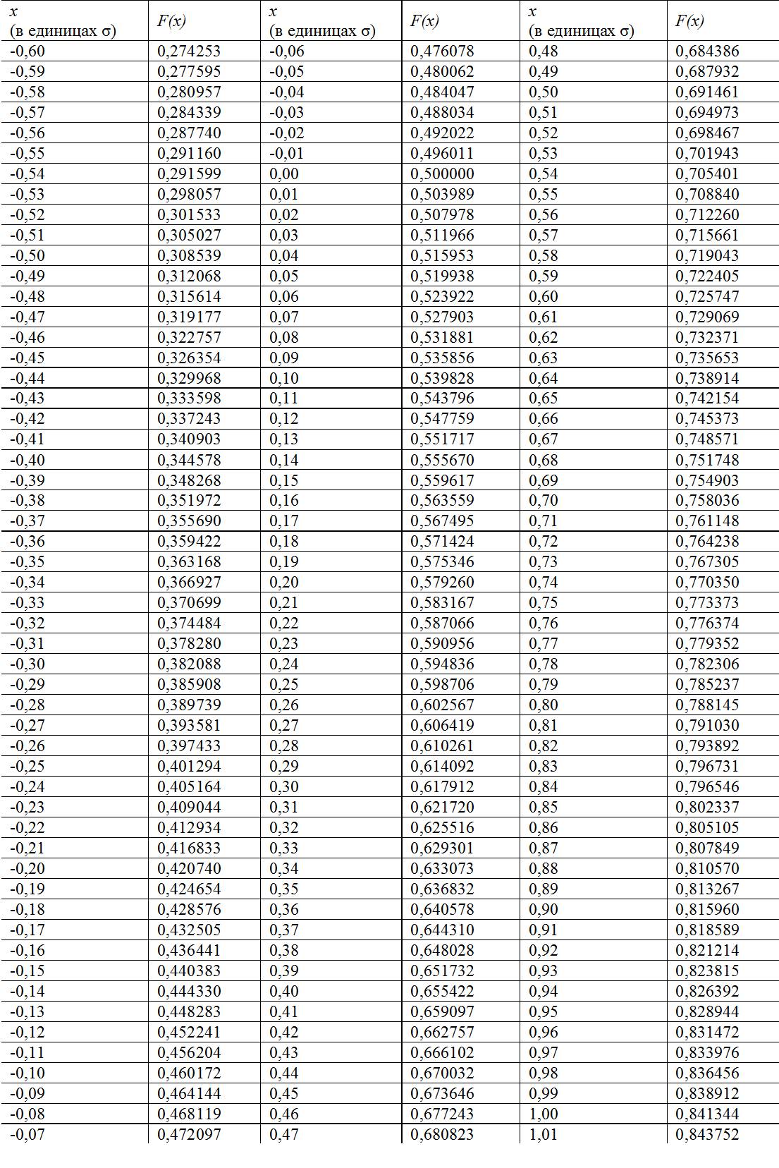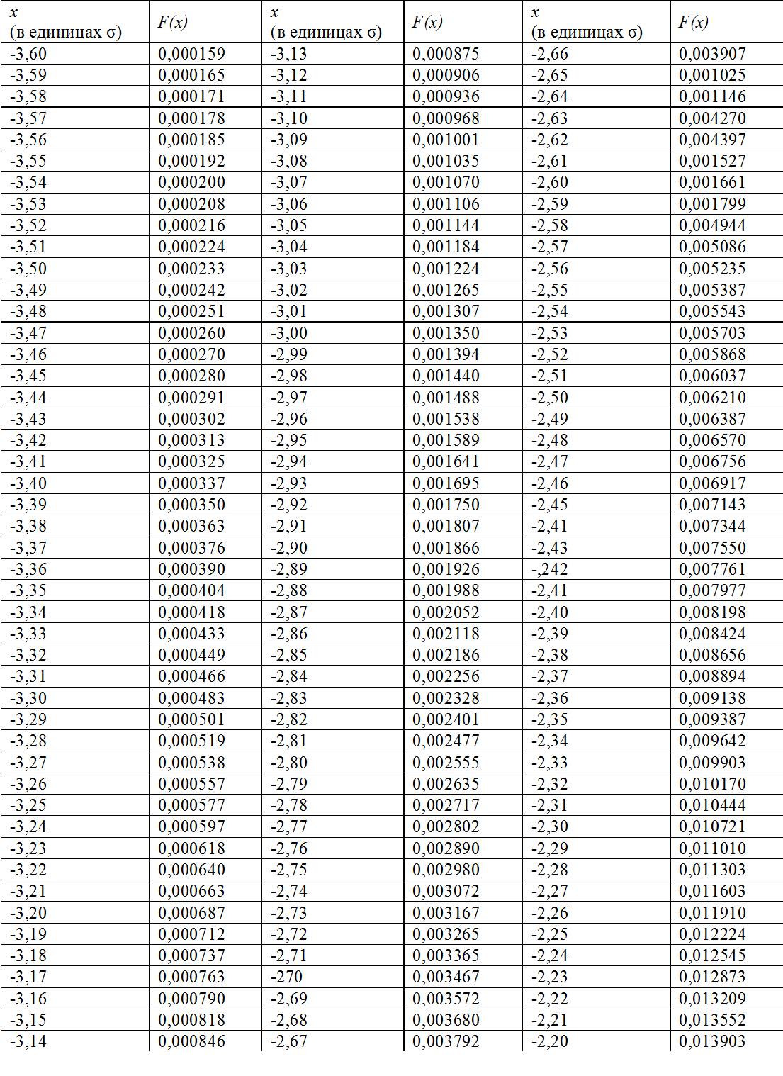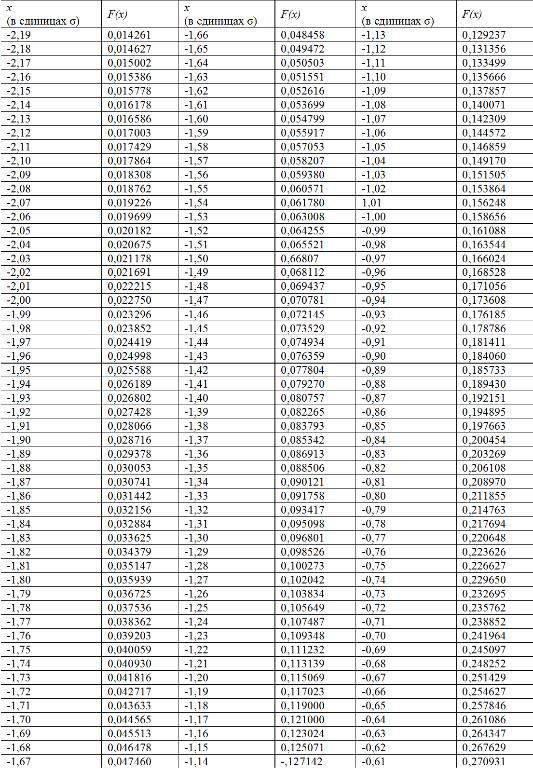 Таблица Гаусса