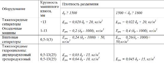При обогащении угля одинаковой крупности среднее вероятное отклонение повышается по мере возрастания плотности разделения. Это увеличение незначительно для обогатительных машин с тяжелой средой и существенно для машин с водной средой. По этой причине для машин с водной средой оценка эффективности разделения производится не по Еpm как для аппаратов с тяжелой средой, а по безразмерному коэффициенту погрешности J: