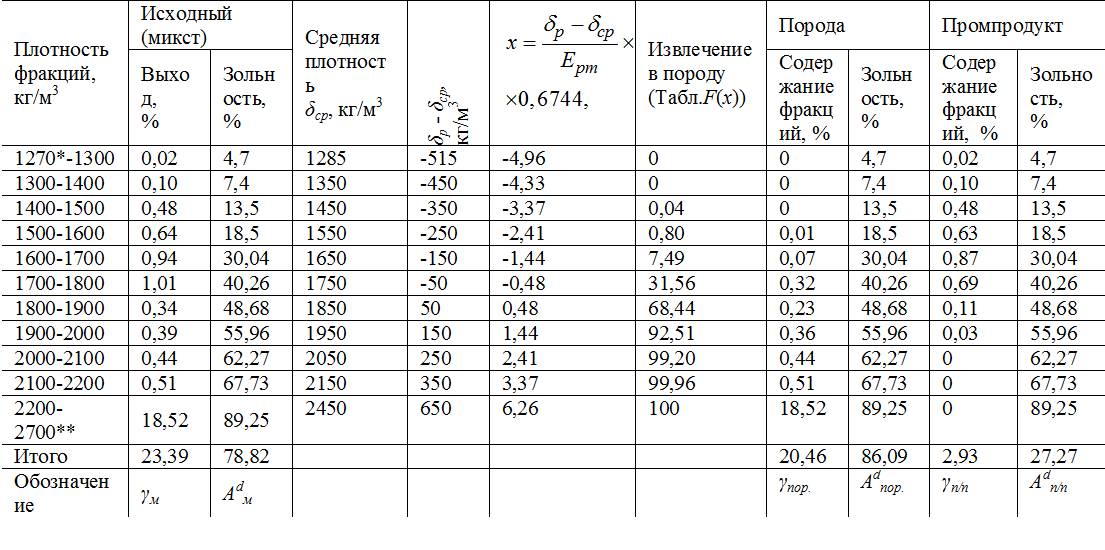 то в концентрат могут попасть фракции с плотностью до δp +4Epm =2+0,62=2,62 г/см3, а в породу – фракции с плотностью до δp -4Epm =2–0,62=1,38 г/см3. В интервале от δp до δp +4Epm в продуктах обогащения будут и фракции с промежуточной плотностью.