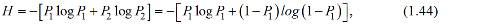 При Р = 0 и Р = 1 Н → 0, а при Р1 = Р2 =1/2Н= Нmax=1 бит, т. е. равна одной единице неопределенности (энтропии).
