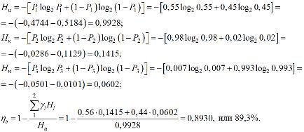 Эффективная энтропия выражается в долях единицы или процентах: ηэ= 0(0 %) при Hi = Hи т. е. разделения нет; ηэ =1(100 %) при Hi = 0 т. е. разделение идеальное.